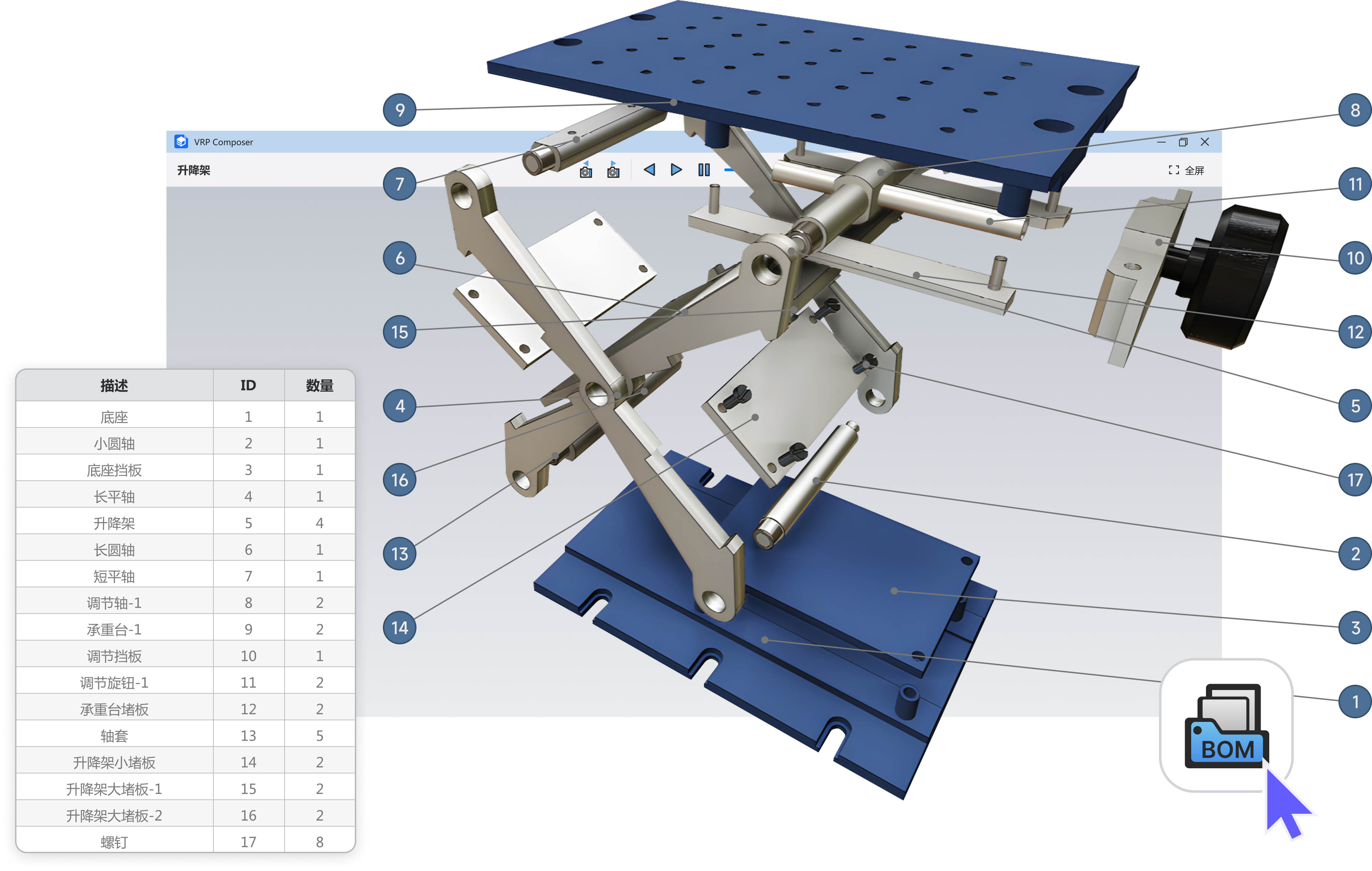 所需的可视内容,如爆炸视图、矢量线条图或注解等。