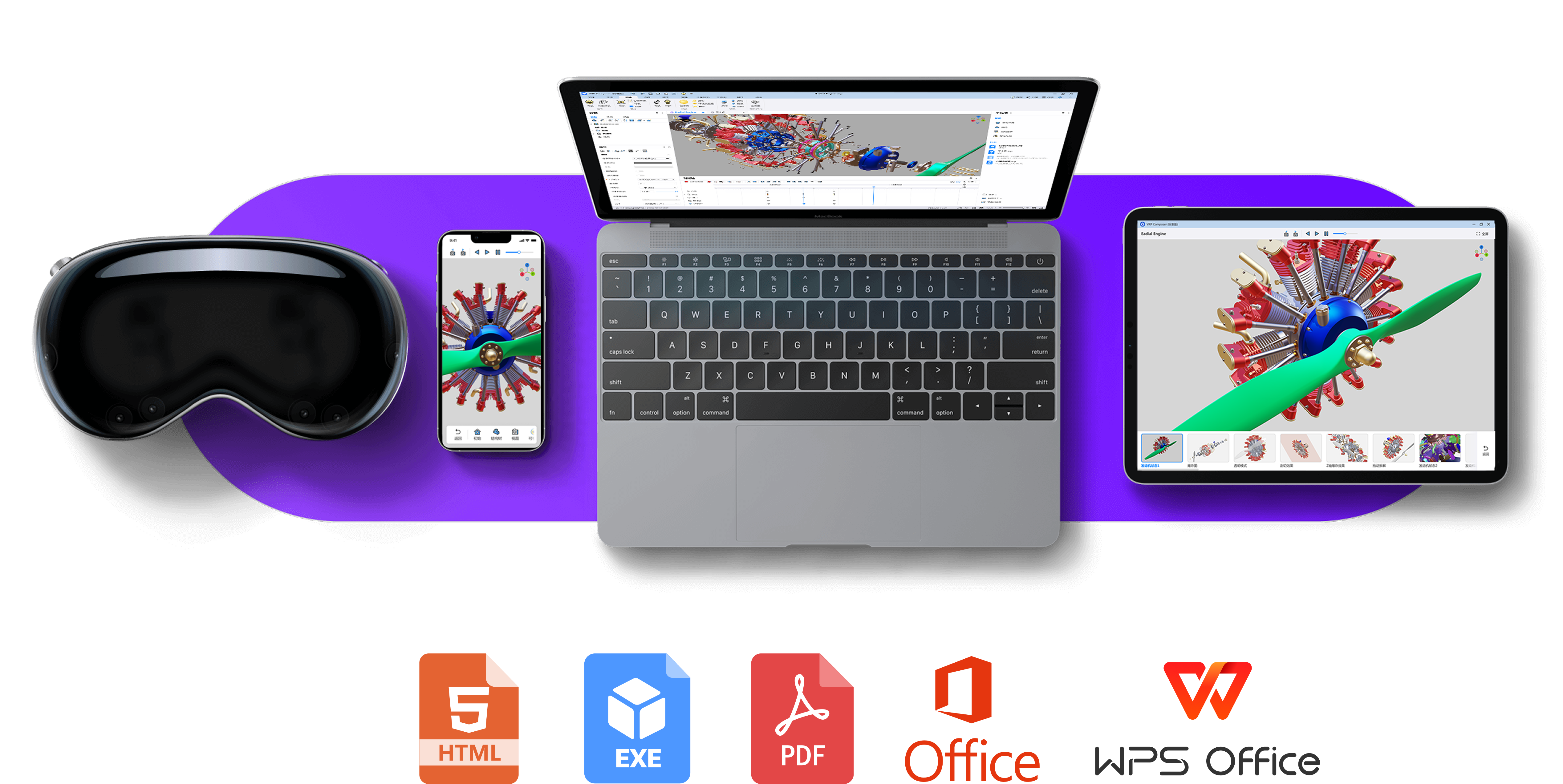 支持将3D交互式内容发布至Word、Excel、PowerPoint、PDF和HTML等多种文档格式,可覆盖多元化应用 场景。